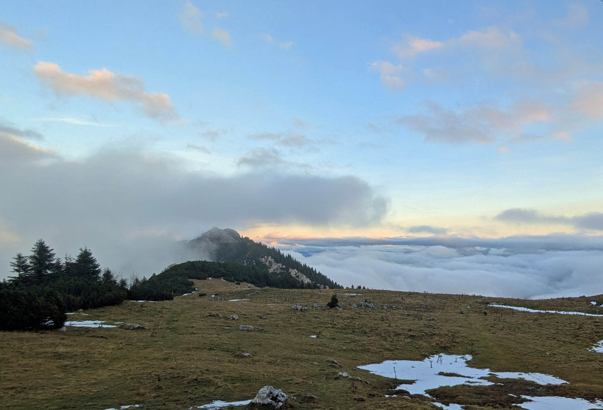 Die Tour war abgesehen vom Nordanstieg zur Kesselwand meist schneefrei, aber auf nordseitigen Expositionen oft sehr matschig.