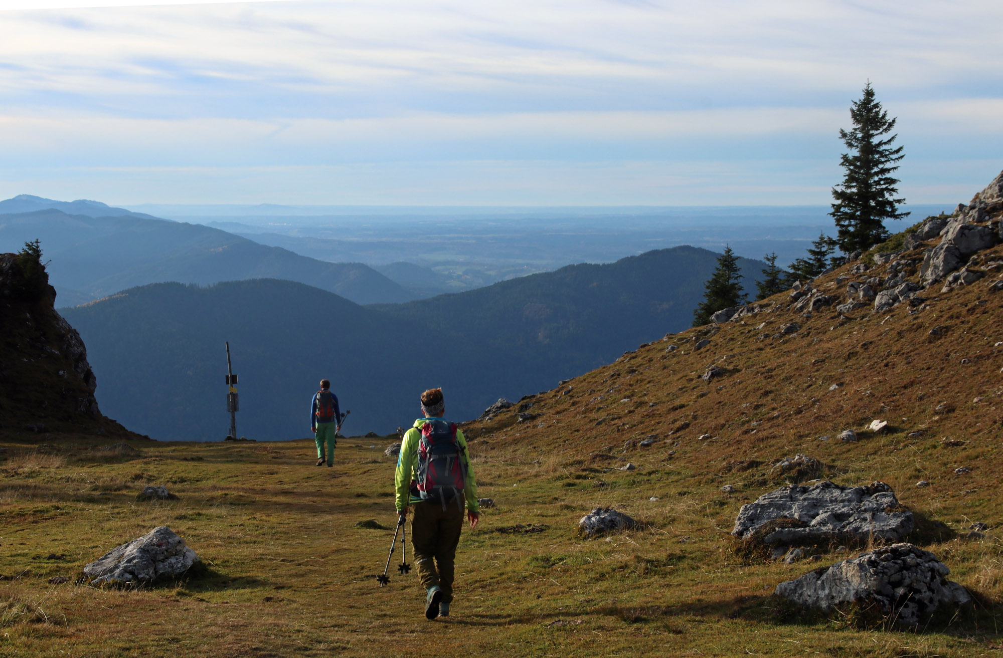 Während wir die ersten vier (Kasererwand, Wildpaljoch, Kesselwand & Lacherspitz) noch bei kühlem, windigen Nebelwetter erlebten, konnte wir am Folgetag Wendelstein, Schweinsberg und Breitenstein in herrlicher Herbstsonne genießen.