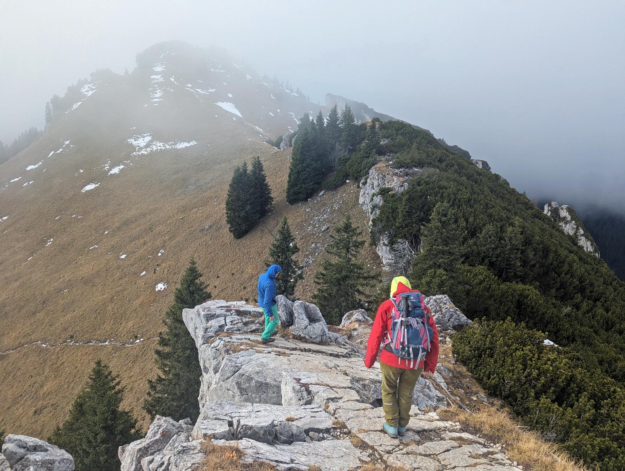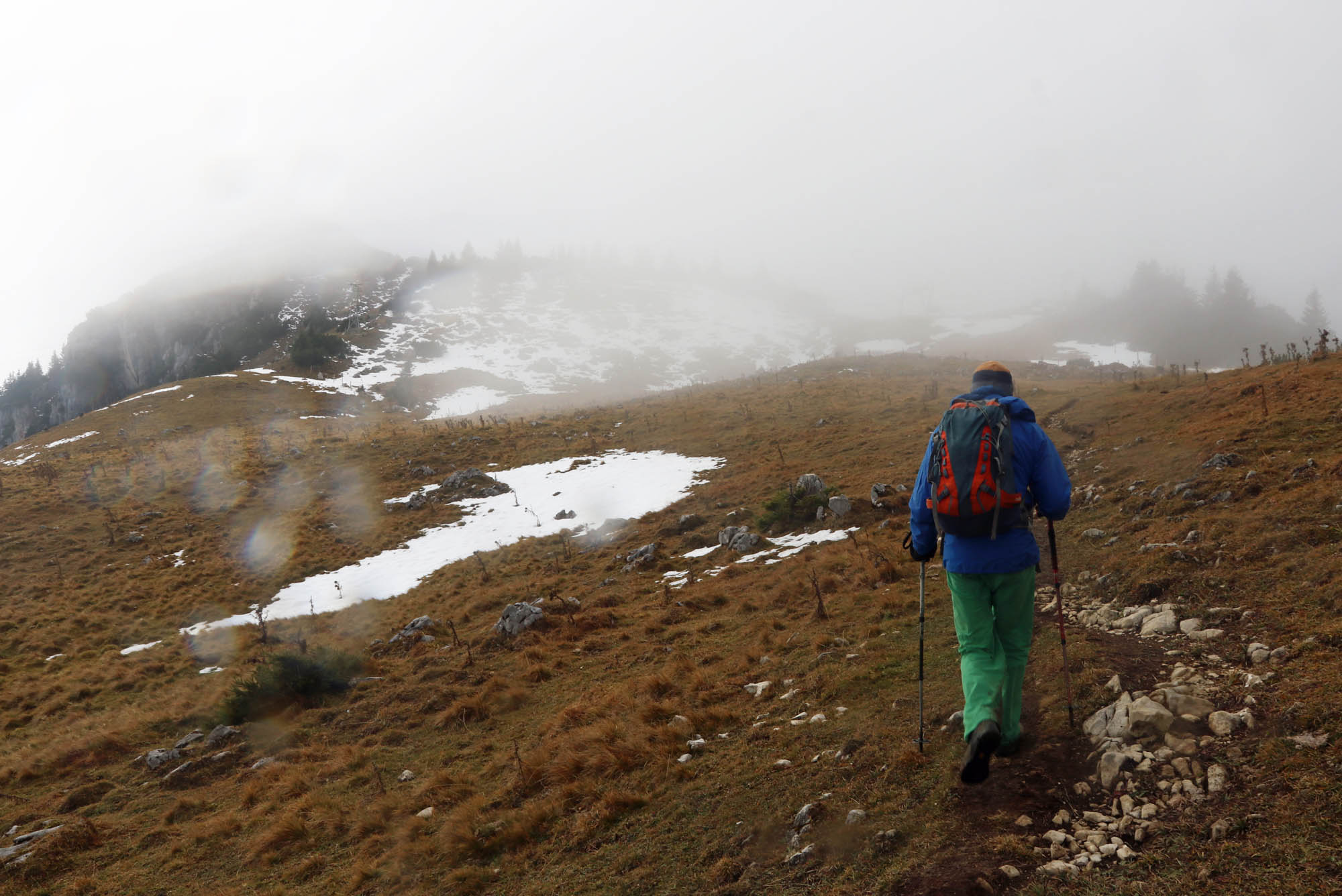 Ende ist an der Bushaltestelle Winkl (Von wo der Bus zum Bahnhof Miesbach fährt). Bei uns haben alle Anschlüsse gut geklappt. Achtung: Die Buslinie 349 zum Sudelfeld verkehrt nur noch bis 3.11. und dann wieder ab Mitte Mai. Im Winter kann man bei Skibetrieb mit dem Skibus zum Sudelfeld fahren, wenn man die Tour als Schneeschuhtour machen möchte.