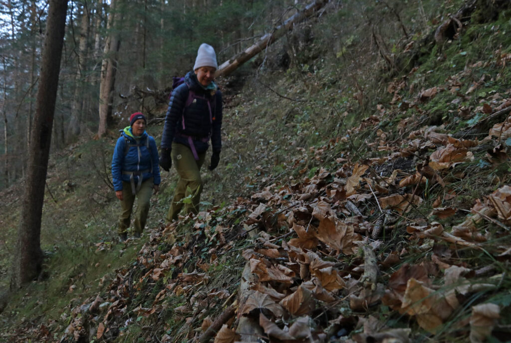 Gute Trittsicherheit und (wie gestern) trockene Wegverhältnisse sind an manchen Stellen des schmalen Steigs hoch ins Kuhkar empfehlenswert.