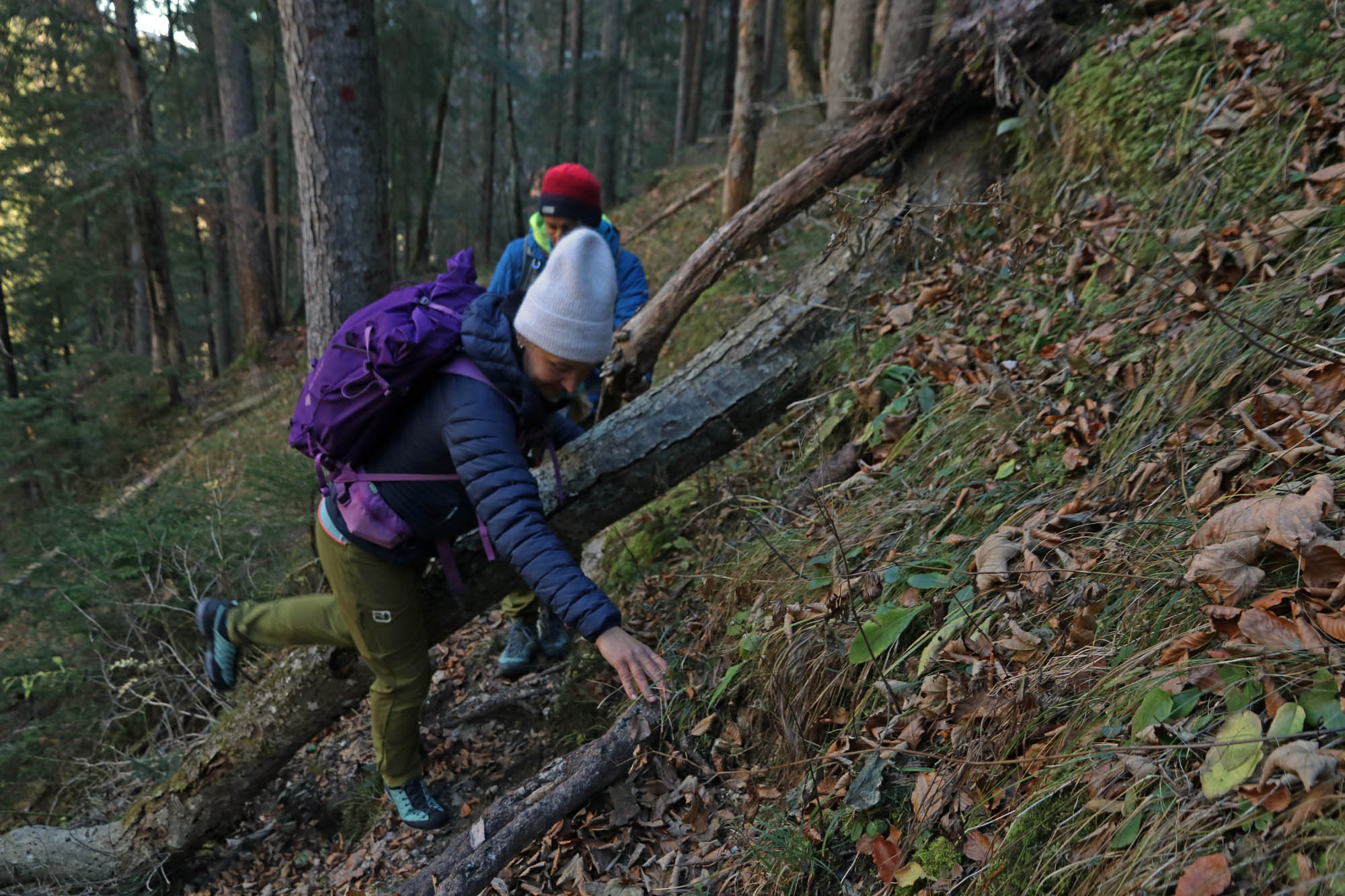 Gute Trittsicherheit und (wie gestern) trockene Wegverhältnisse sind an manchen Stellen des schmalen Steigs hoch ins Kuhkar empfehlenswert.