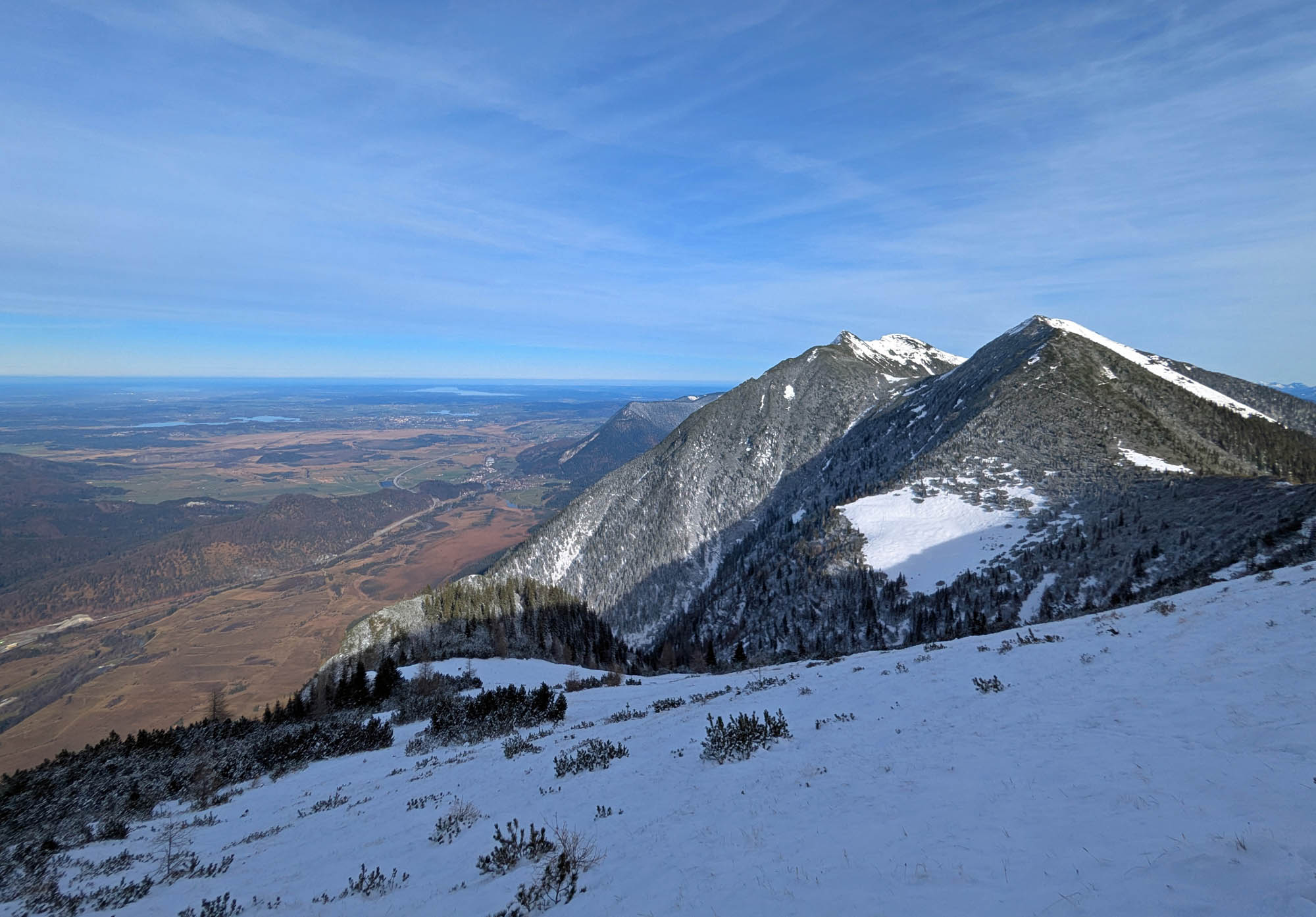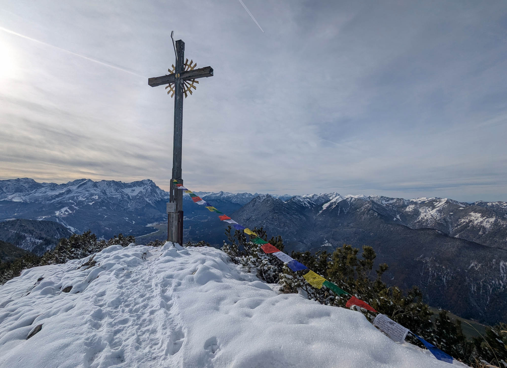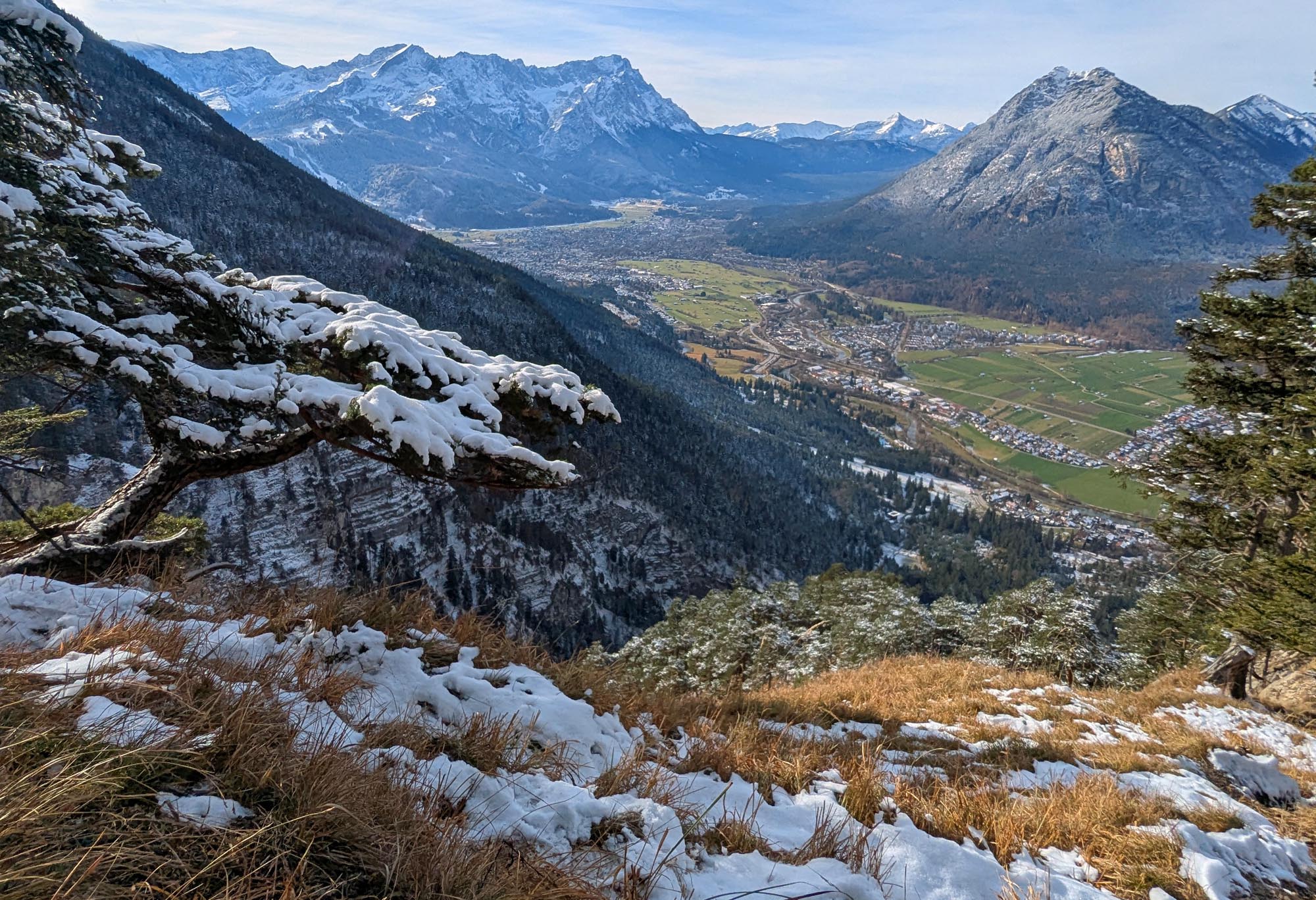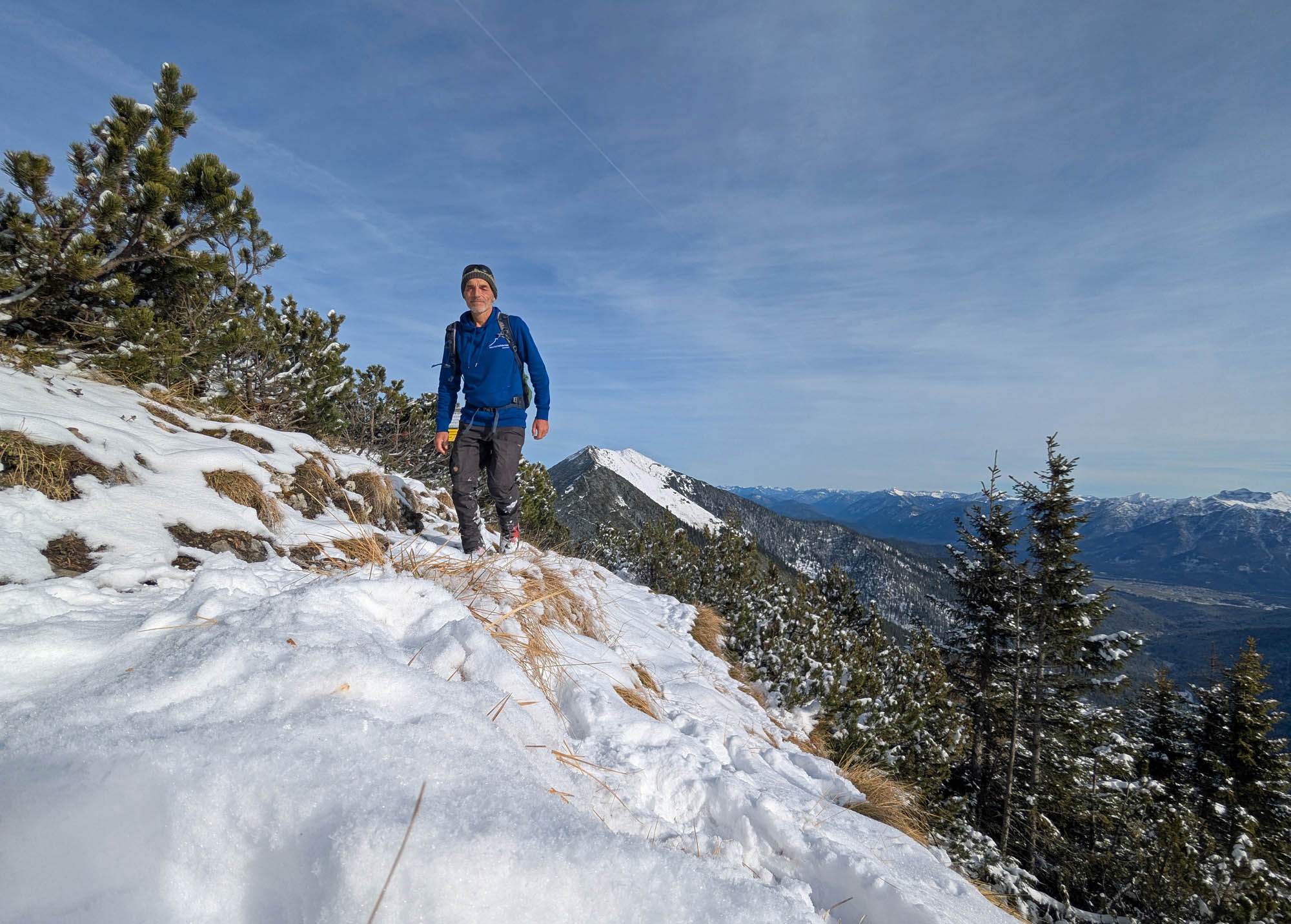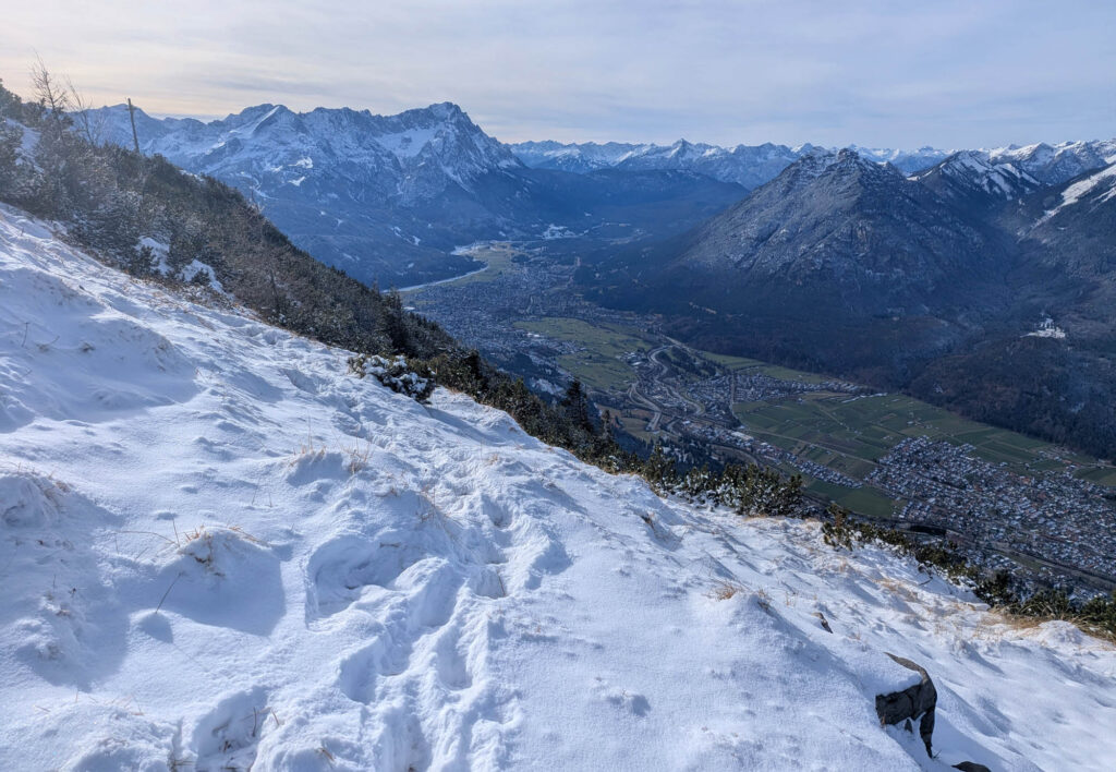 Da ich keine Spikes mit dabei hatte, bin ich dem herrlichen Kamm weiter zum Frauenmahd Sattel gefolgt, von wo aus (nach einer Fahrweg-Passage) ein deutlich leichterer Weg zurück nach Farchant führt. Insgesamt eine wirklich tolle Rundtour, an deren Ende man sich am netten Dorfladen von Farchant auch noch verwöhnen lassen kann.