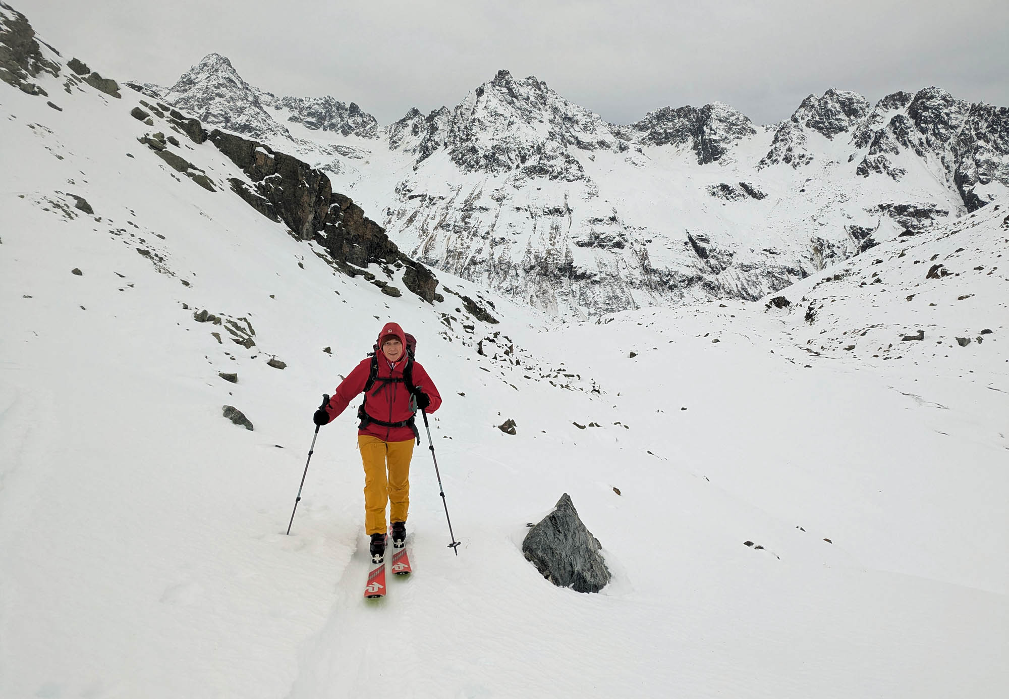 Tatsächlich liegt rund um die Jamtalhütte gerade so ausreichend Schnee für ein paar Touren. Wir sind immer sehr vorsichtig abgefahren und haben dabei eigentlich nur wenige Steinkontakte gehabt. Allerdings muss man Bruchharsch beherrschen!