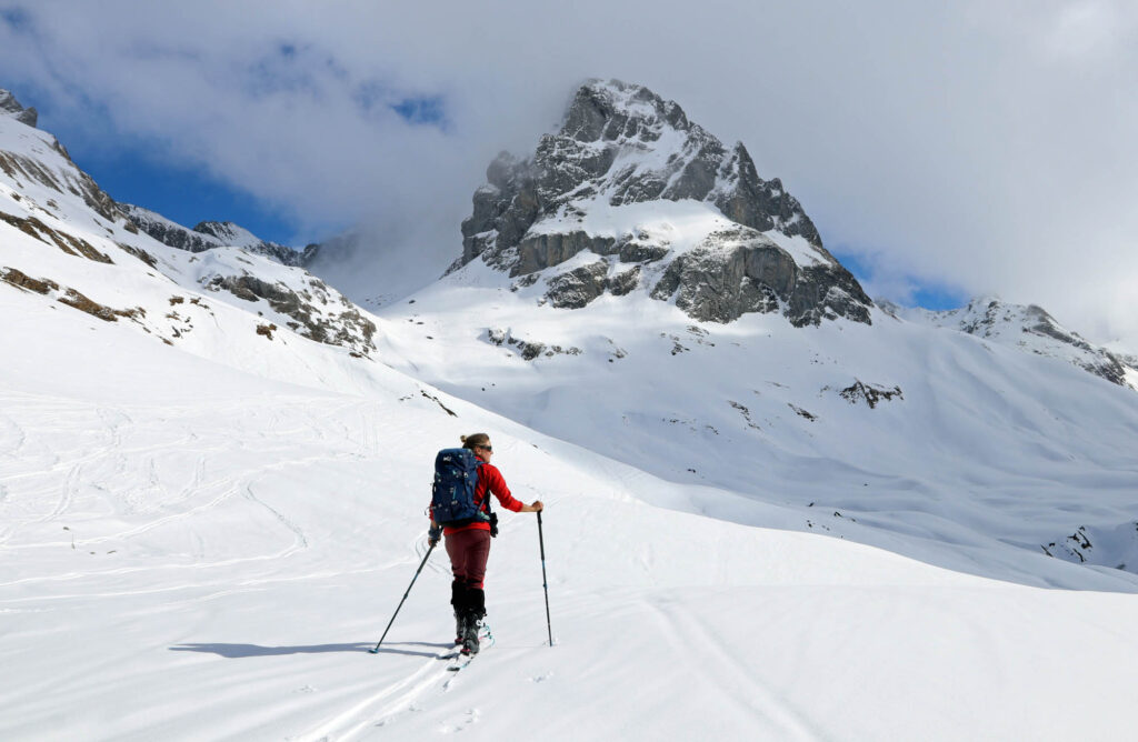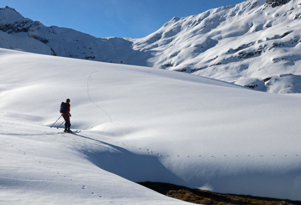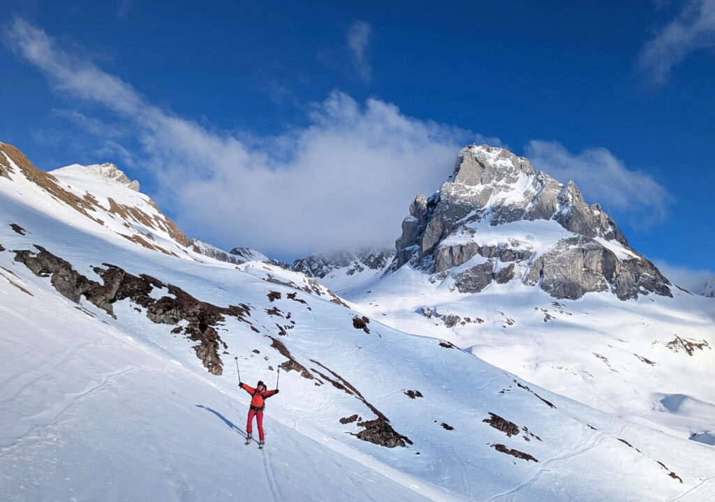 Nach dem Gipfelglück ging es durch das grandiose Schneetal zurück nach Zug, das wir rechtzeitig erreichten, bevor der Föhn zusammenbrach und dichter Nebel bis in den Talboden drückte.