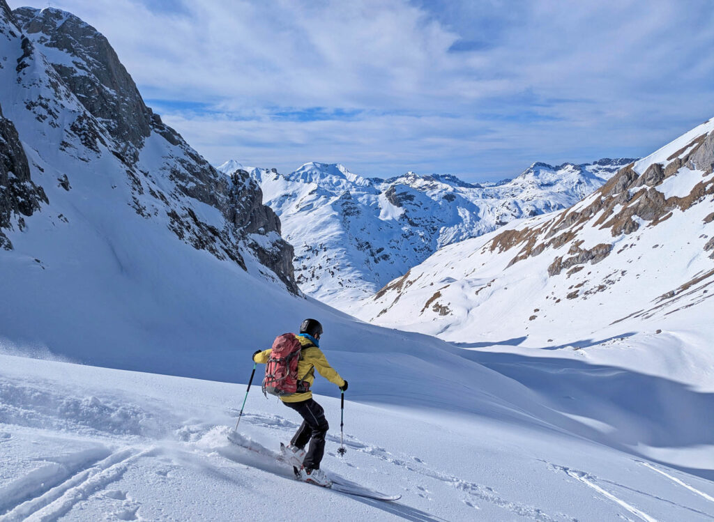 Direkt neben dem, mit Liftanlagen extrem erschlossenen Flexenpass hat die Ravensburger Hütte ein Eldorado an grandiosen und eher anspruchsvollen Skitouren zu bieten.