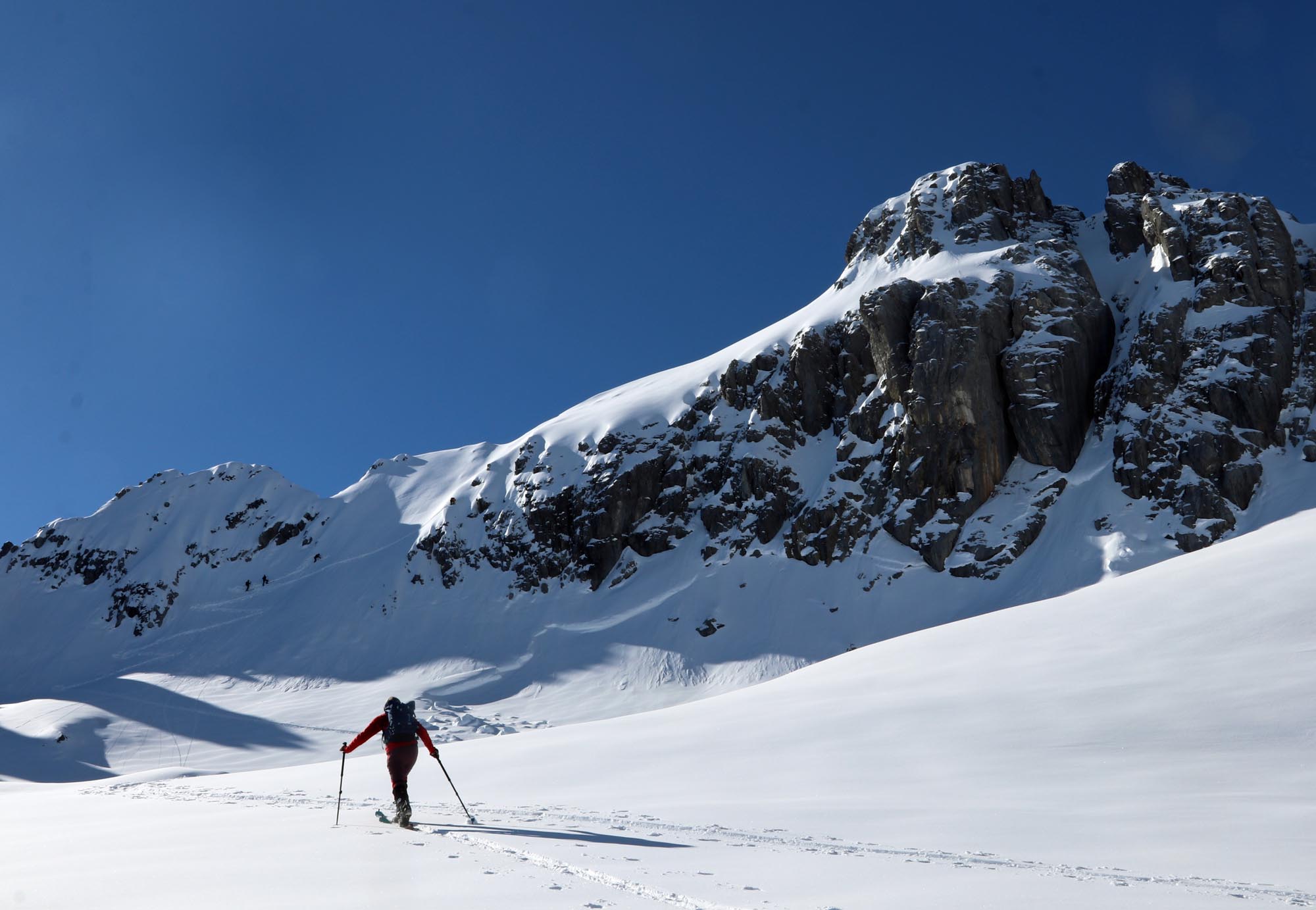 Direkt neben dem, mit Liftanlagen extrem erschlossenen Flexenpass hat die Ravensburger Hütte ein Eldorado an grandiosen und eher anspruchsvollen Skitouren zu bieten.